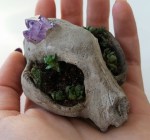 Just listed these two cement cat skull bonsai planters that have real amethyst crystal cluster inclusions! Check em out on my etsy shop! https://www.etsy.com/shop/PastelAlienShop