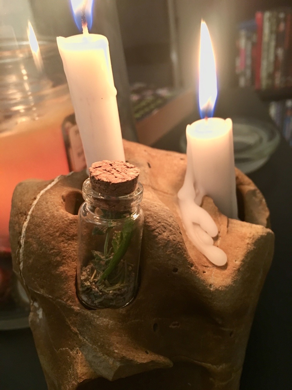 My roommate has some people staying a few nights in our apartment, but I’m wary of strangers in my home. So, I came up with a quick little spell jars to keep an eye on them & protect my home from any wanted energies or situations while they’re here.