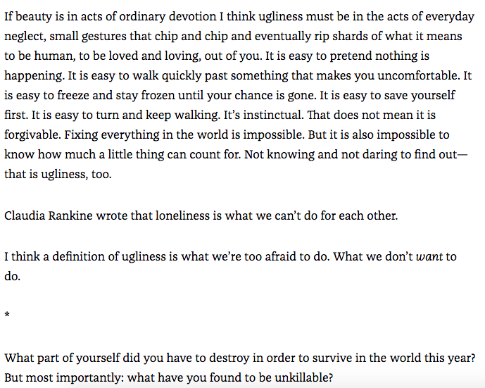 waterwitchesmovingstone Uncategorized February 25, 2018December 8, 2018 1 Minute arabellesicardi: The Year in Ugliness. I’m glad I got to write this. Share this: Share on X (Opens in new window) X Share on Facebook (Opens in new window) Facebook Like Loading... Related Published by waterwitchesmovingstone View all posts by waterwitchesmovingstone Published February 25, 2018December 8, 2018