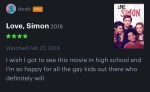 waterwitchesmovingstone Uncategorized March 21, 2018December 8, 2018 1 Minute chrisandfem: some of my favorite reviews of Love, Simon (2018) so far Share this: Share on X (Opens in new window) X Share on Facebook (Opens in new window) Facebook Like Loading... Related Published by waterwitchesmovingstone View all posts by waterwitchesmovingstone Published March 21, 2018December 8, 2018