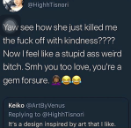 waterwitchesmovingstone Uncategorized March 29, 2018December 8, 2018 1 Minute eccentric-nae: This is super sweet but also like real self reflective. I like it. Share this: Share on X (Opens in new window) X Share on Facebook (Opens in new window) Facebook Like Loading... Related Published by waterwitchesmovingstone View all posts by waterwitchesmovingstone Published March 29, 2018December 8, 2018