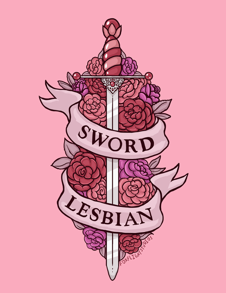 SUPPORT YOUR LOCAL SWORD LESBIAN…by buying this design on a variety of items including RAD STICKERS at my Redbubble!