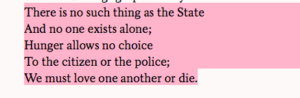 w.h. auden wrote this poem as WW2 was breaking out / years later he edited the last line to “we must love one another and die.”