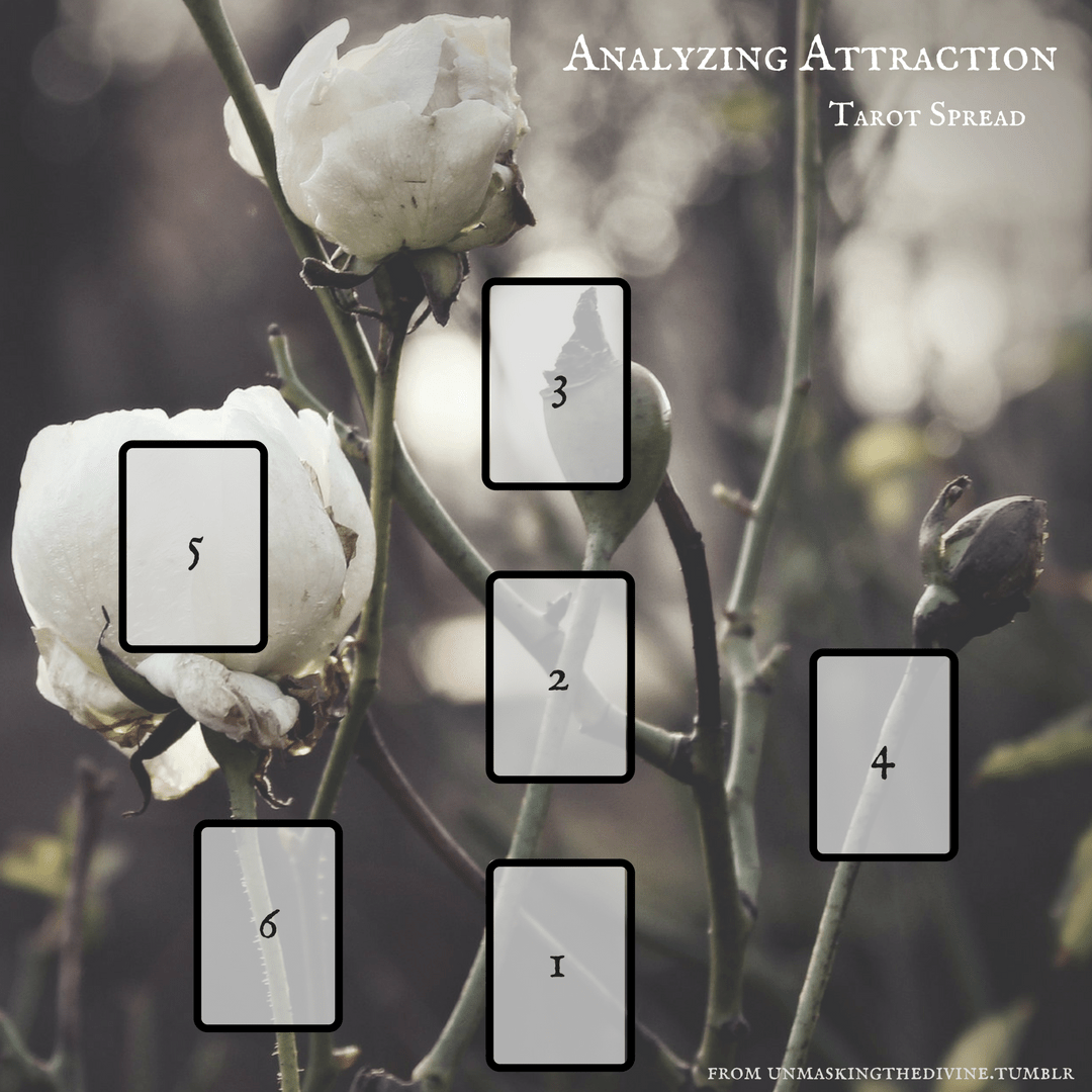 Here’s a little spread I threw together to analyze attraction, whether it be towards another person, a hobby, a lifestyle, or what have you.