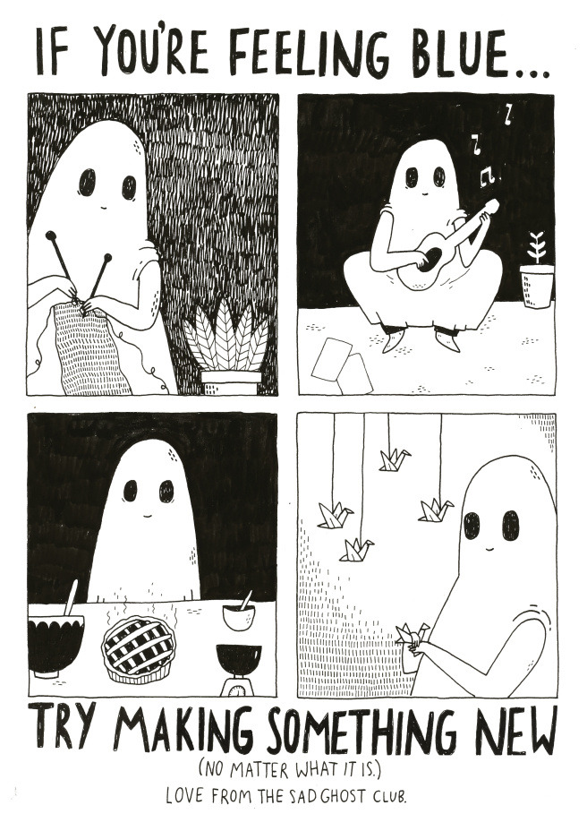waterwitchesmovingstone Uncategorized October 19, 2018December 8, 2018 1 Minute thesadghostclub: thesadghostclub: If you are feeling blue… try making something new (no matter what it is)! Love from The Sad Ghost Club. Shop / About Us / FAQ’s / comics / Archive / Subscribe / Theme Share this: Share on X (Opens in new window) X Share on Facebook (Opens in new window) Facebook Like Loading... Related Published by waterwitchesmovingstone View all posts by waterwitchesmovingstone Published October 19, 2018December 8, 2018