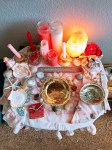 Leftovers from my New Moon Ritual- please take note of the orange ball that is present on the floor 🤣 Watson (my doggo) left it there while I was performing the spell. He literally came over and dropped it on the floor and walked away. I had multiple things burning on my altar, so I didn’t want him too close to knocking things over or for his ball to catch fire if he placed it directly on the altar 🔥 ⠀