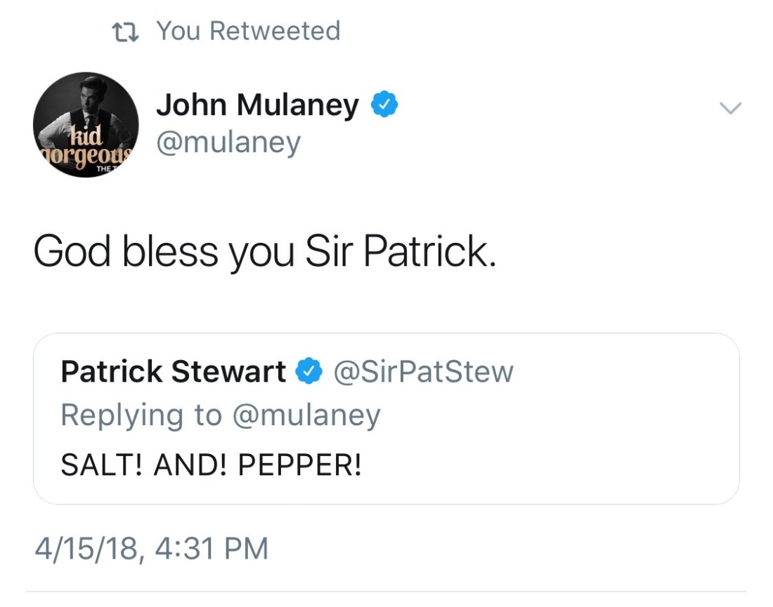 And after like three seconds, where we’re all trying to figure out the punchline because the story clearly hadn’t ended, and John Mulaney quietly says, “Has there been tinfoil on my buttons the whole goddamn show?”
