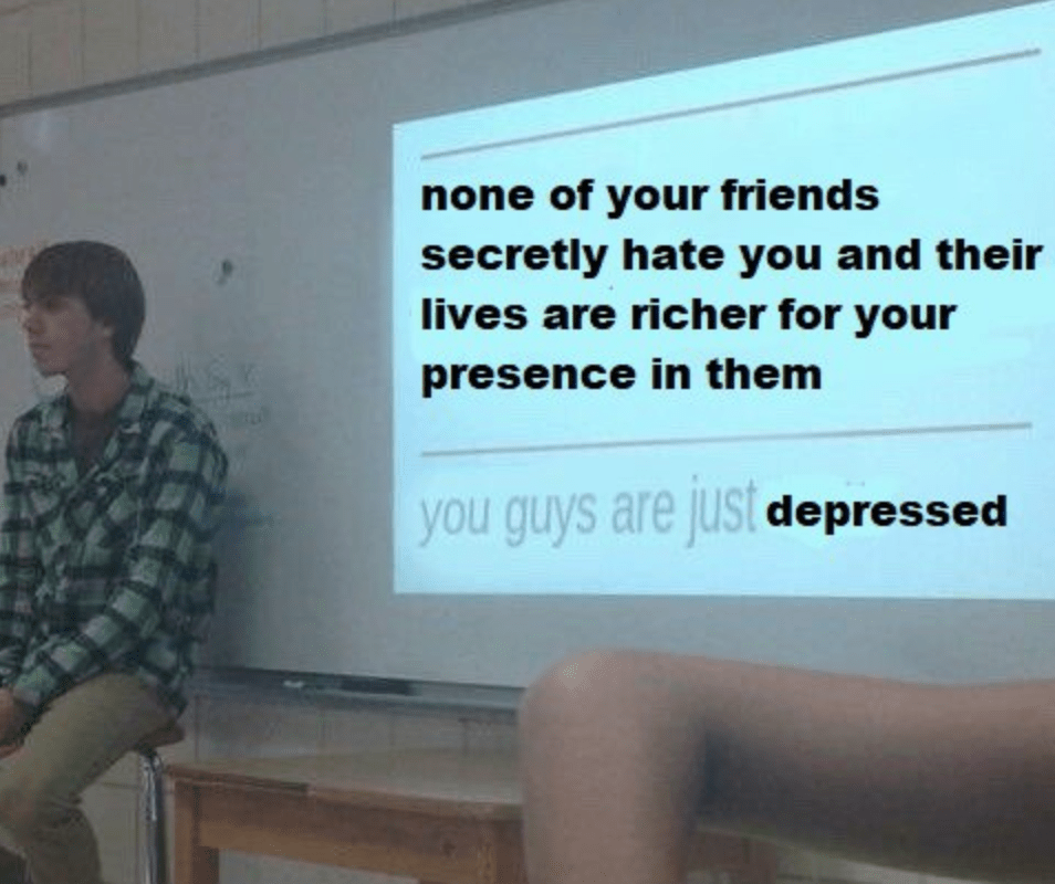 - if someone makes you feel bad most of the time, stop talking to them. making yourself hang out with people who drain you is self harm. stop it.