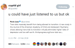 okay, A: they didask. they did listen. like… I don’t wanna exaggerate here but “asking trans kids how they feel” is literally the entire study: