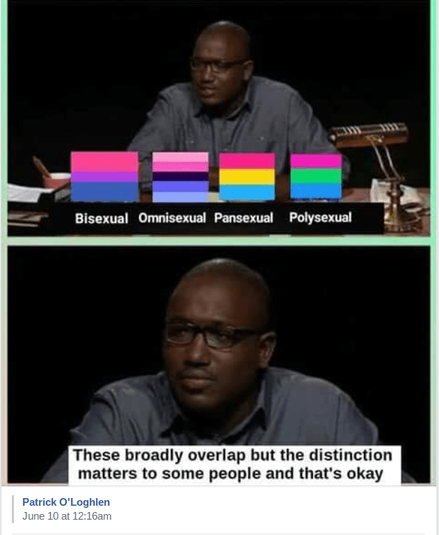 *I do not necessarily share the opinions of any of these authors.**Bi erasure.***TV/TS appears to likely indicate outdated slang from 1976 to refer to a trans person.